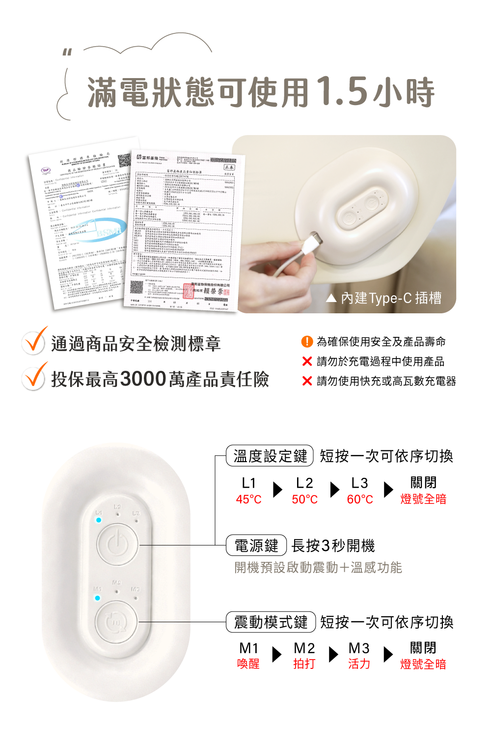✦ 體貼 3 段溫控加熱,暖暖敷更舒服